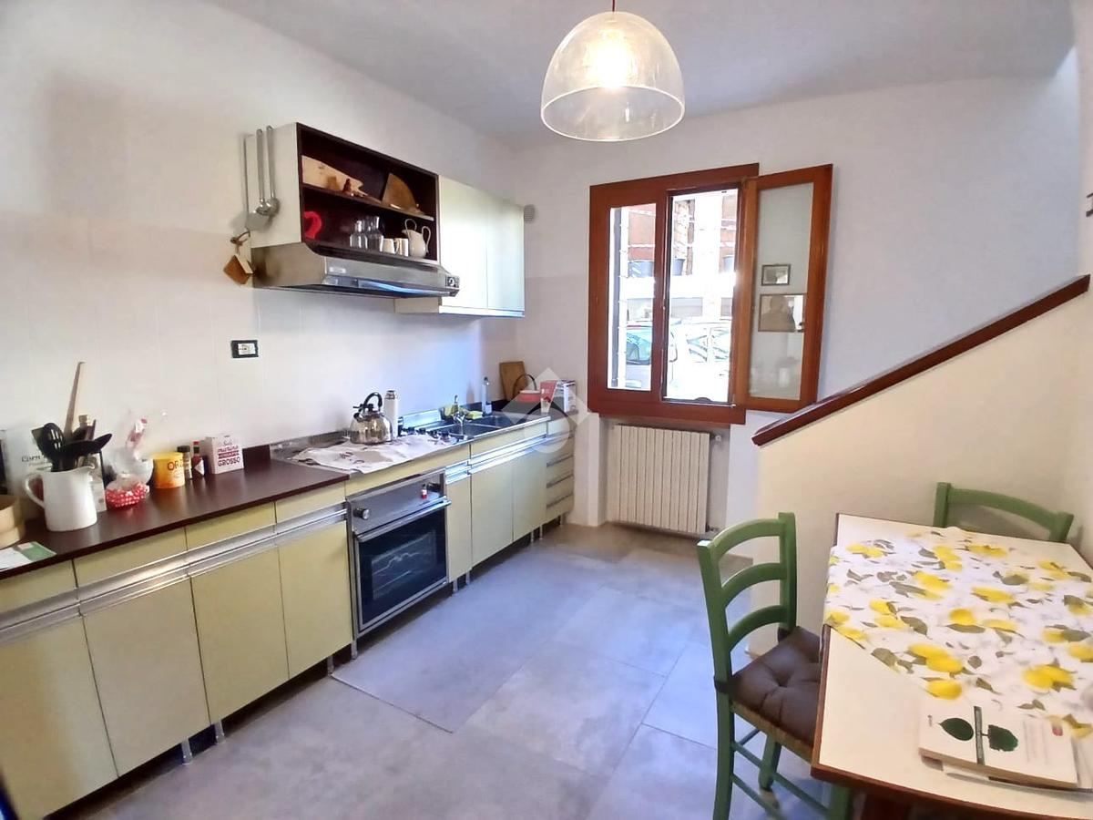 Ingresso su salotto ampio e luminoso, cucina abitabile con spazio sottoscala adibito a lavanderia, scale interne che conducono al reparto notte con due camere matrimoniali grandi, una camera singola ed un bagno finestrato generoso.
