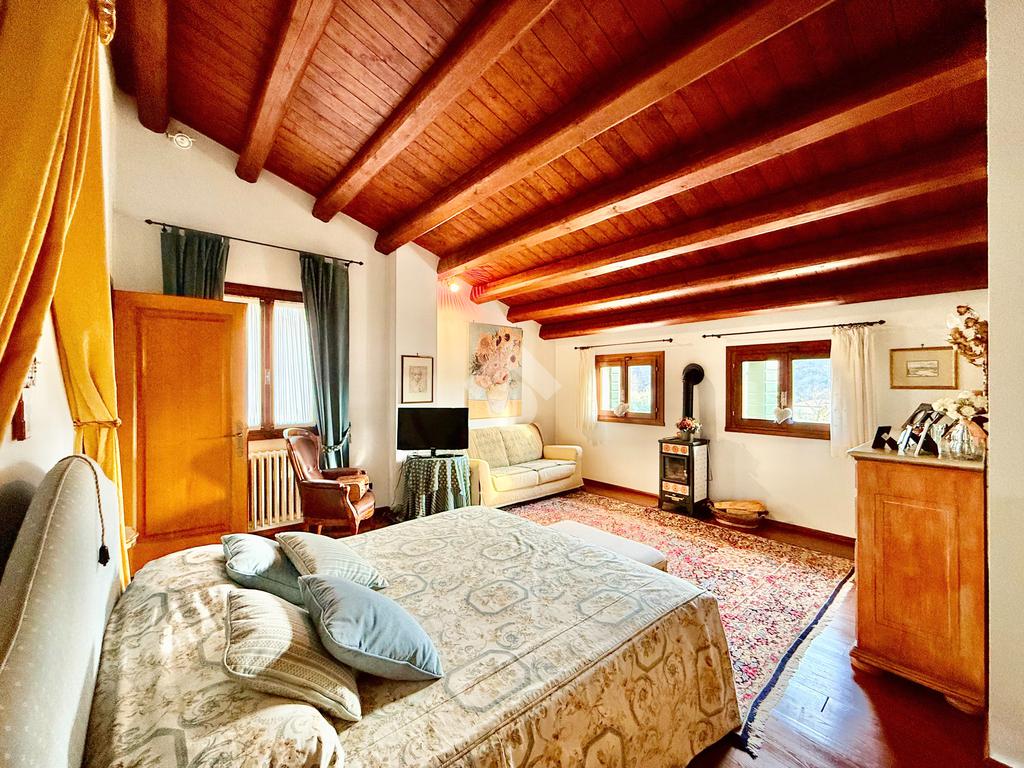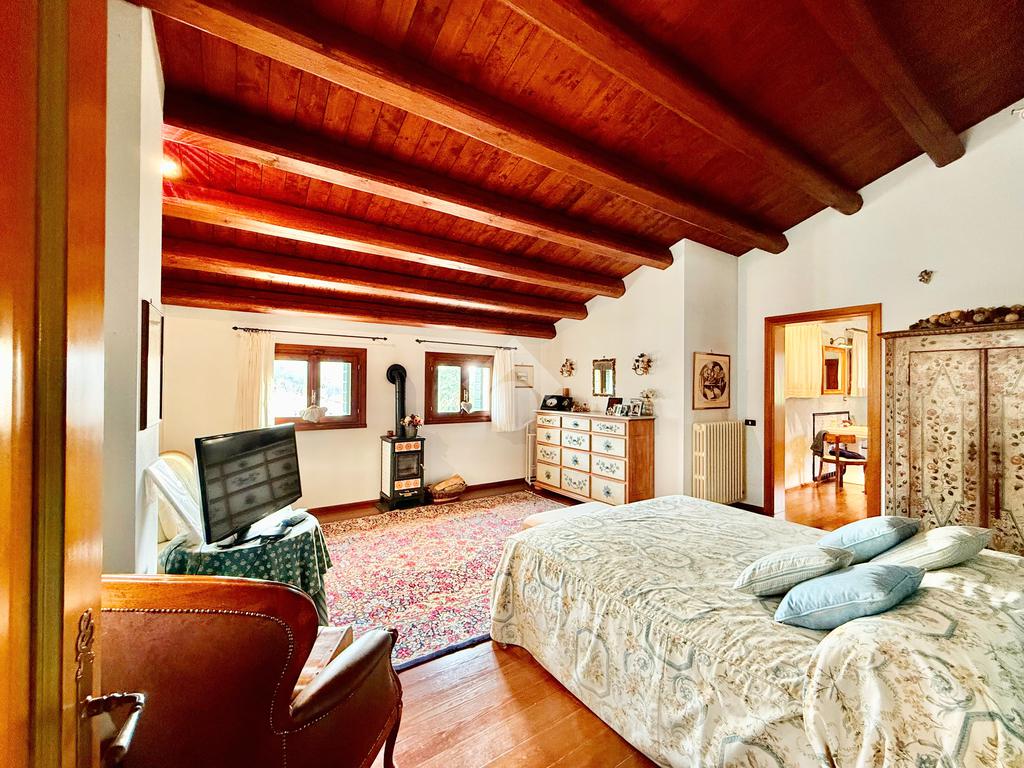Travatura a vista nella camera matrimoniale principale, caldaia recente a condensazione, impianto d'allarme, predisposizione per la climatizzazione.