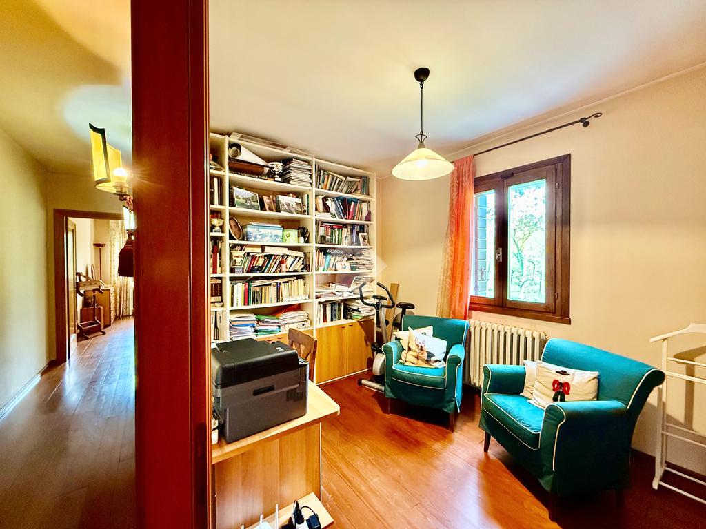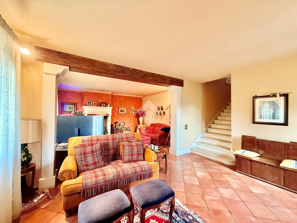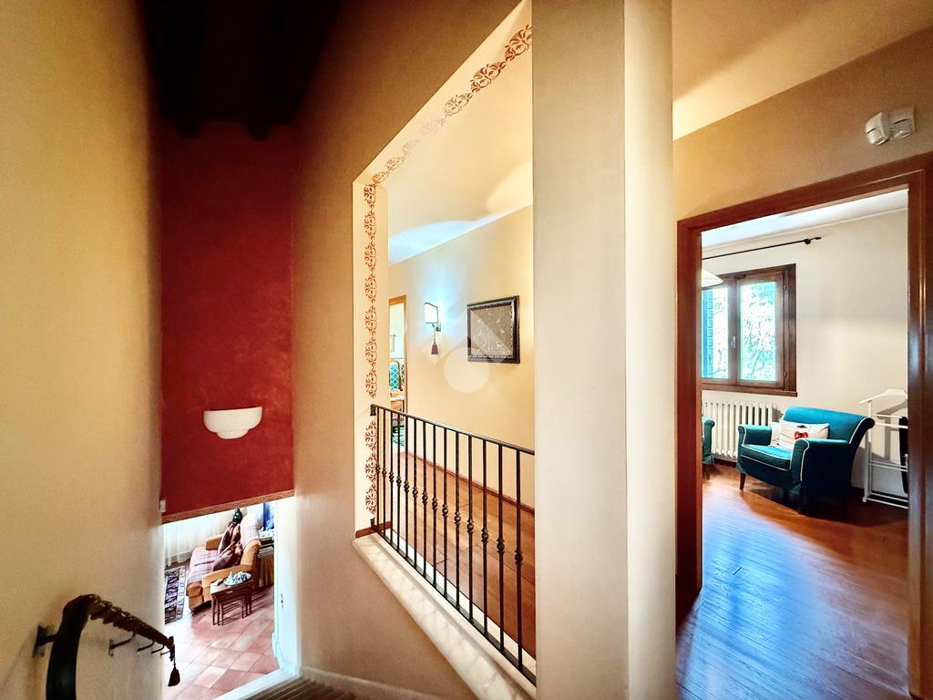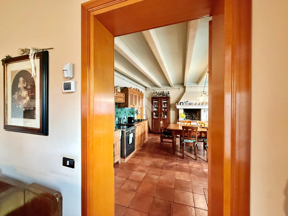Al piano terra portico che introduce alla zona giorno con salotto impreziosito da camino a legna, cucina abitabile separata con delizioso caminetto e stufa. Nello stesso piano, disimpegno con pratica lavanderia e garage singolo.