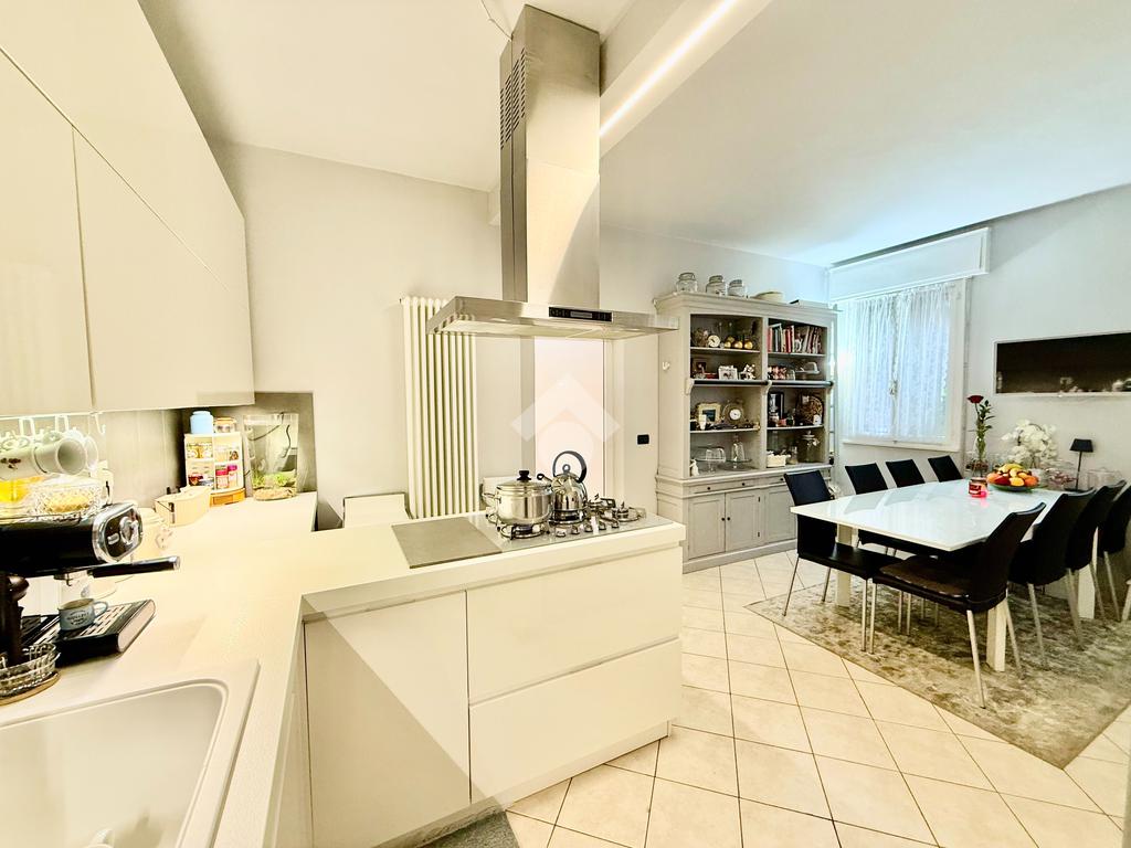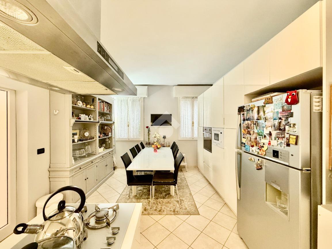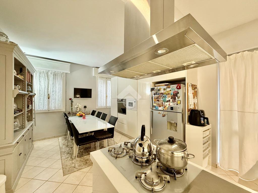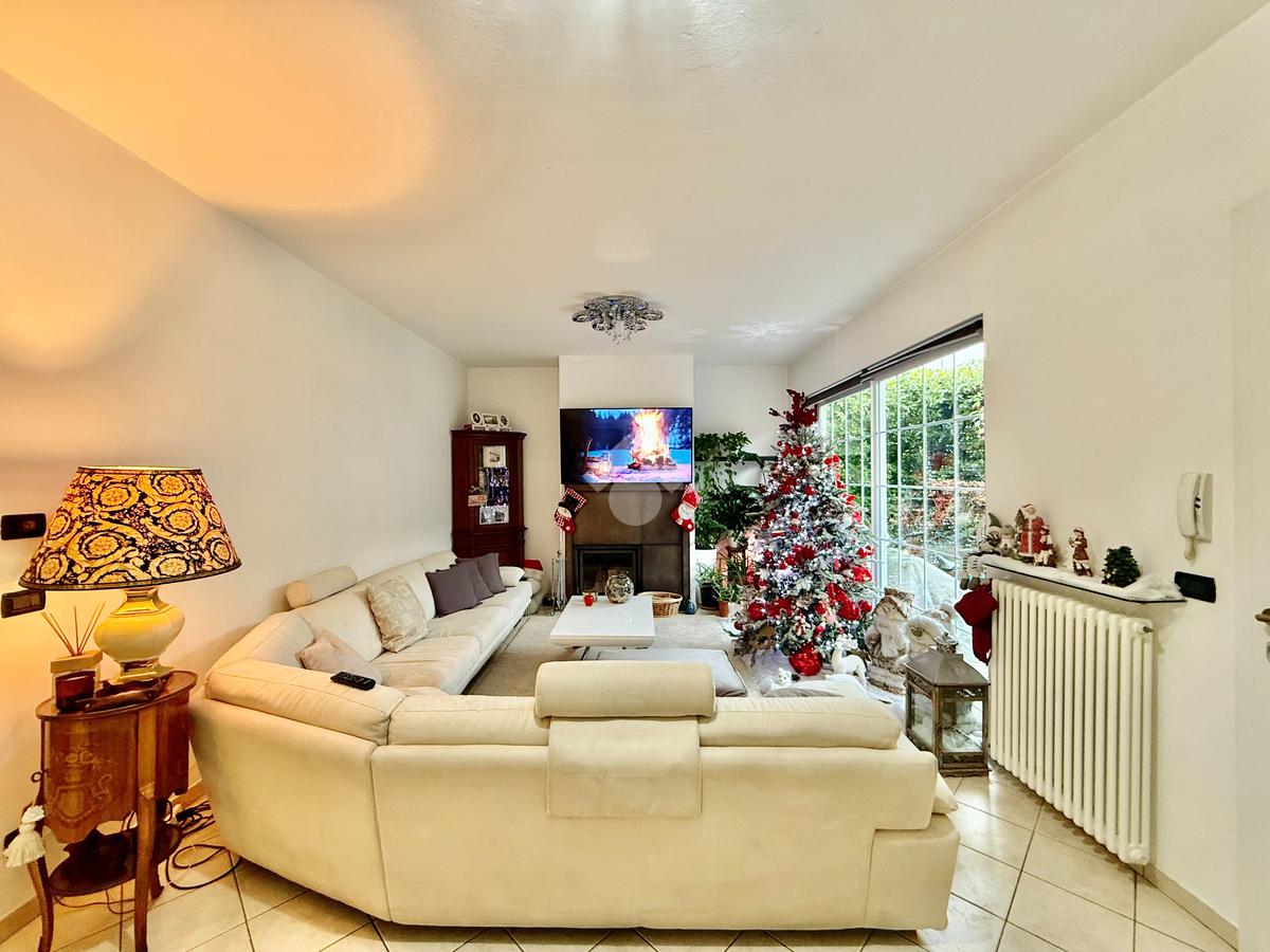 Ingresso con salotto dotato di caminetto e luminosa vetrata, cucina abitabile con zona pranzo ed uscita su scoperto privato.