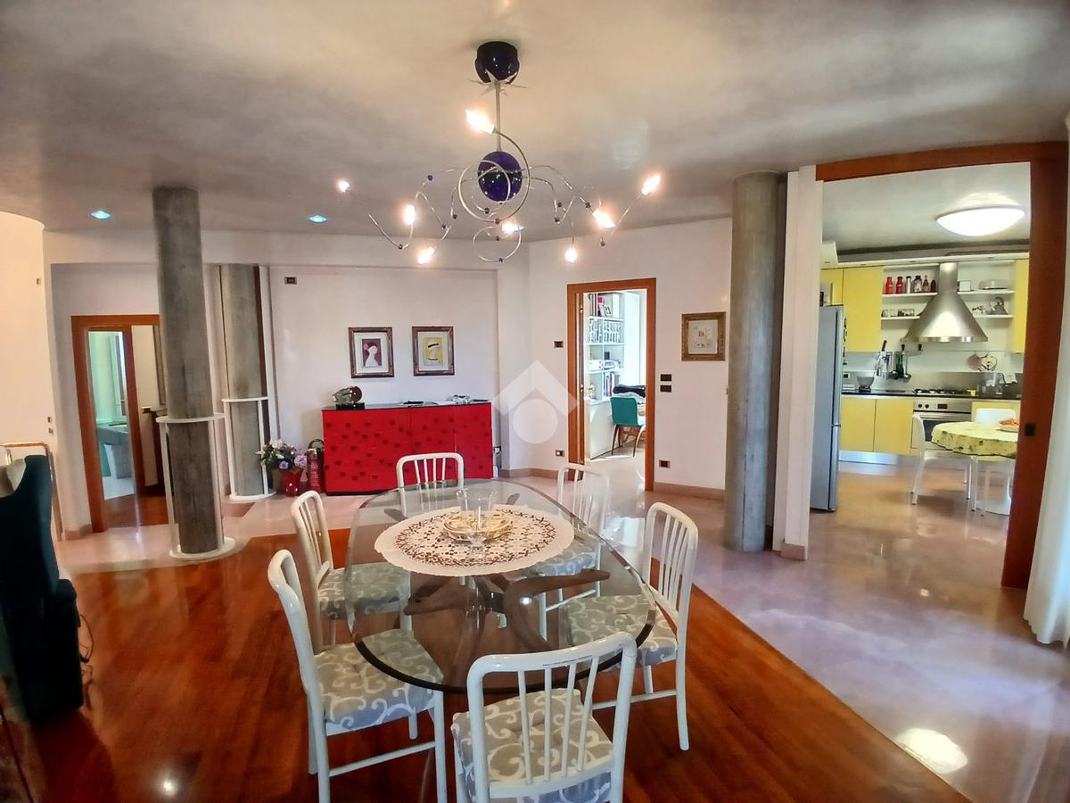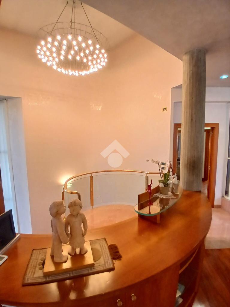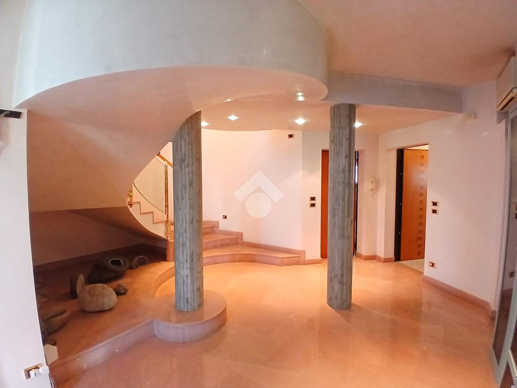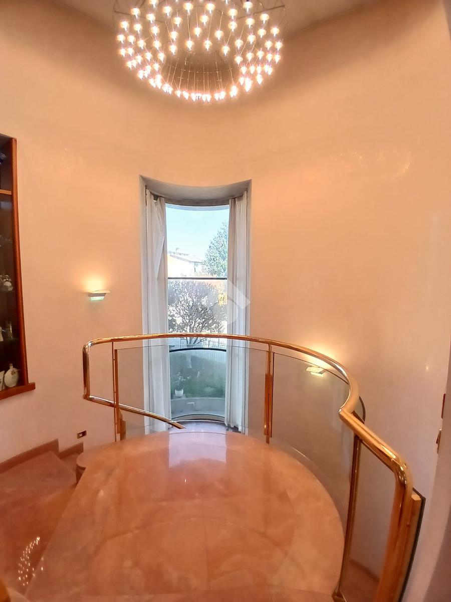 Al piano terra ampio ingresso con scala elicoidale che accompagna al piano superiore.