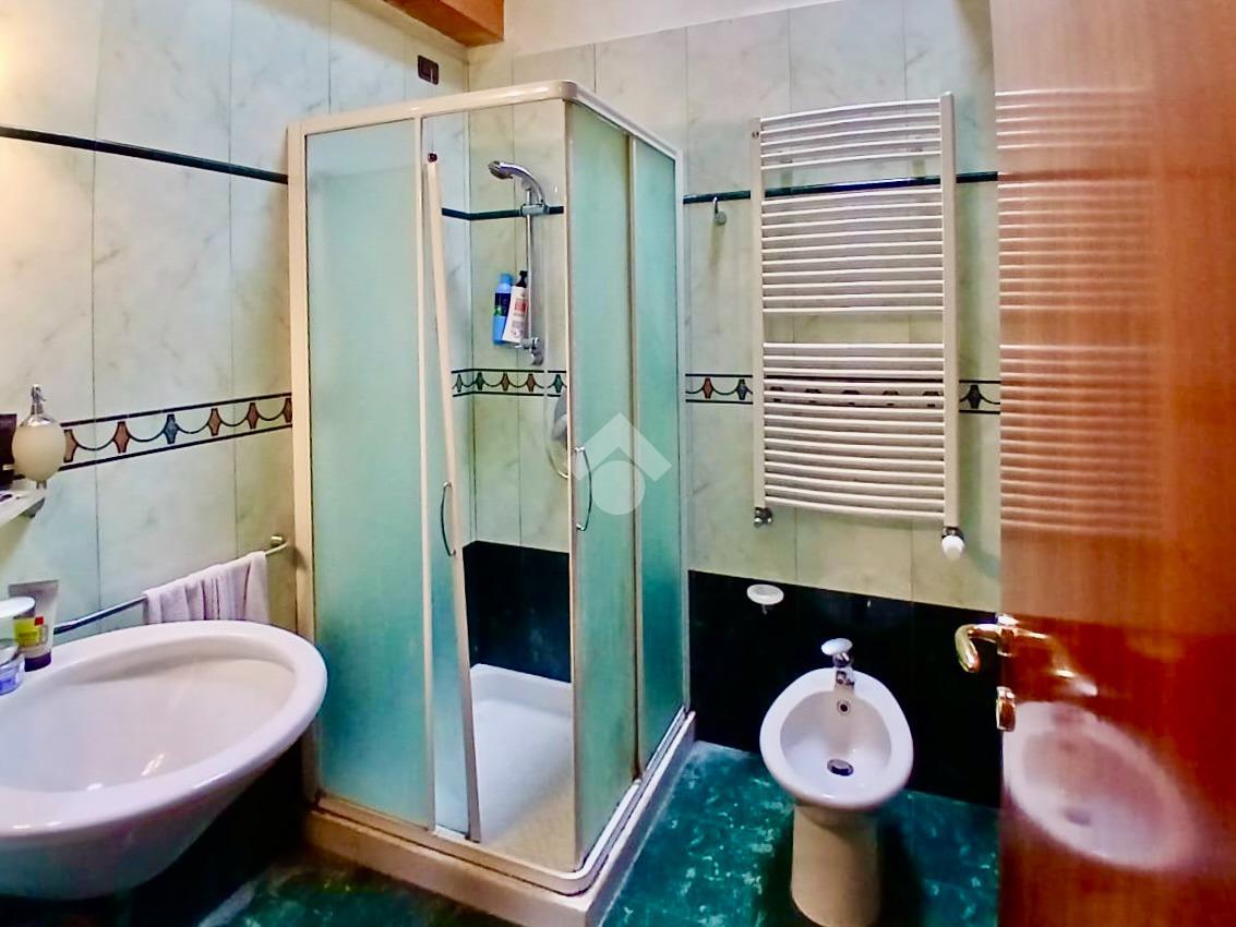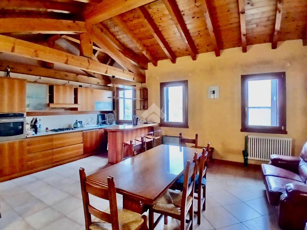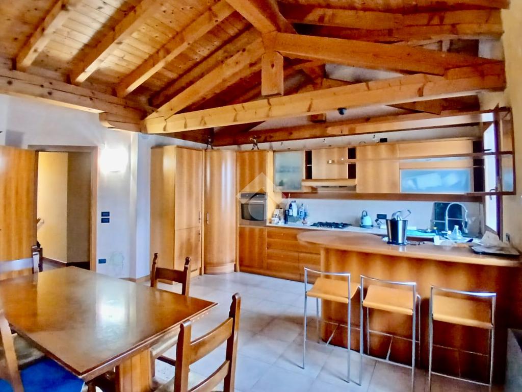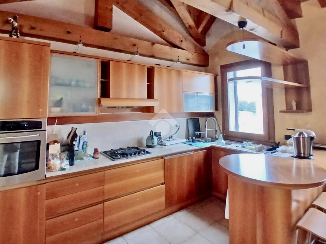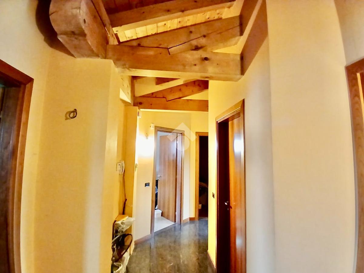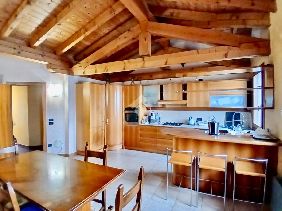 Al piano superiore, collegato internamente al negozio, si raggiunge l'abitazione disposta su unico livello e composta da ingresso, salone angolo cottura con travatura a vista, disimpegno notte, due camere matrimoniali, camera singola, doppi servizi di cui uno finestrato con doccia.