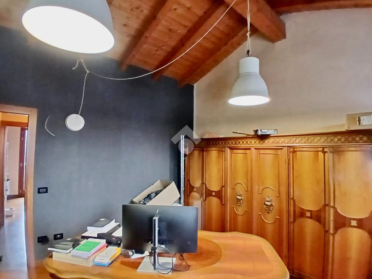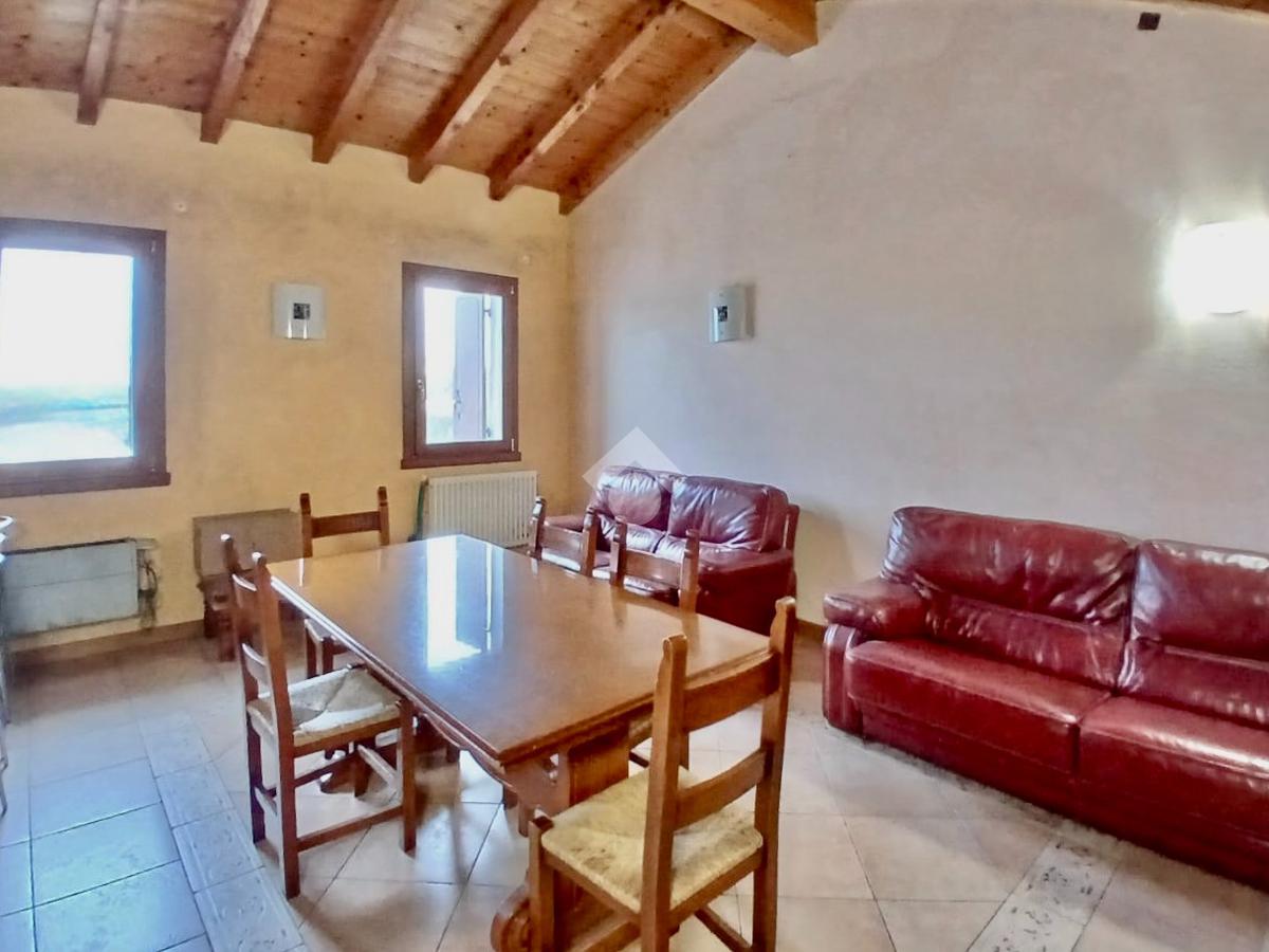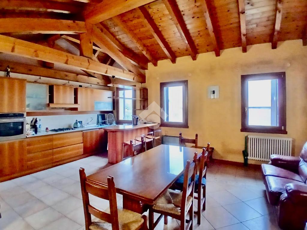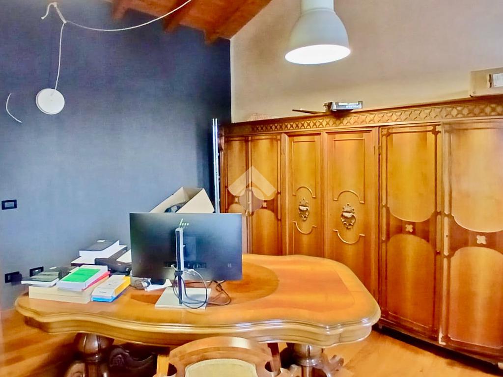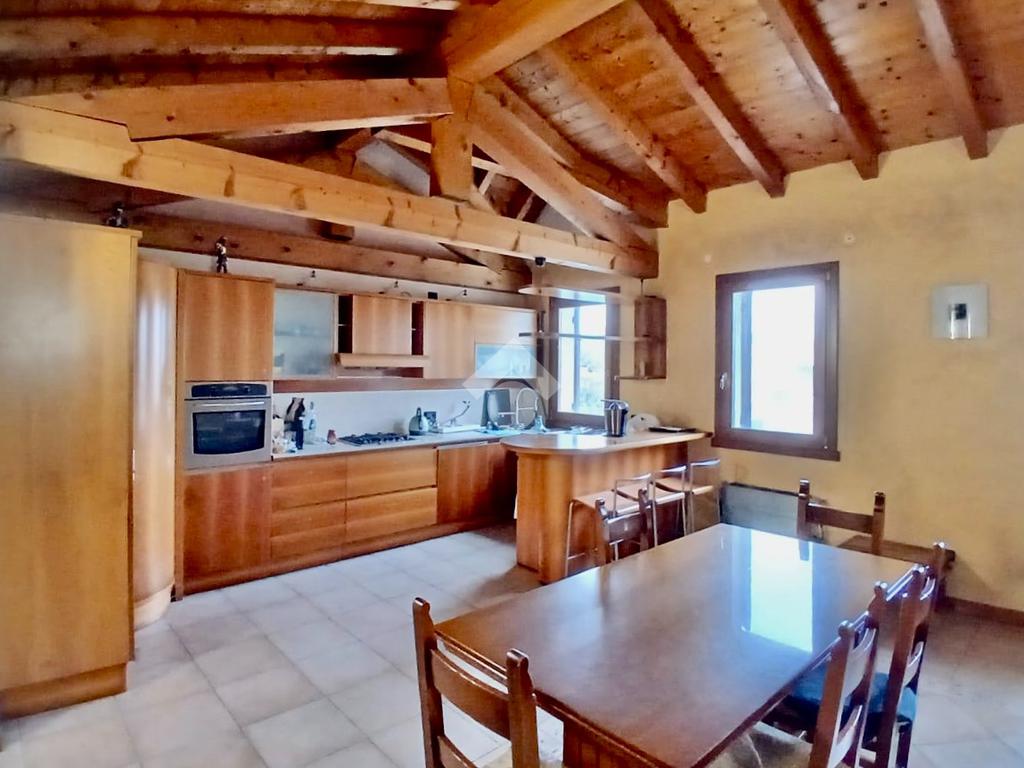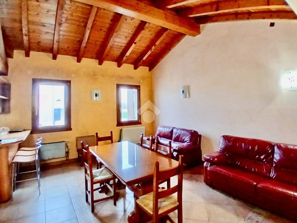 Al piano superiore, collegato internamente al negozio, si raggiunge l'abitazione disposta su unico livello e composta da ingresso, salone angolo cottura con travatura a vista, disimpegno notte, due camere matrimoniali, camera singola, doppi servizi di cui uno finestrato con doccia.