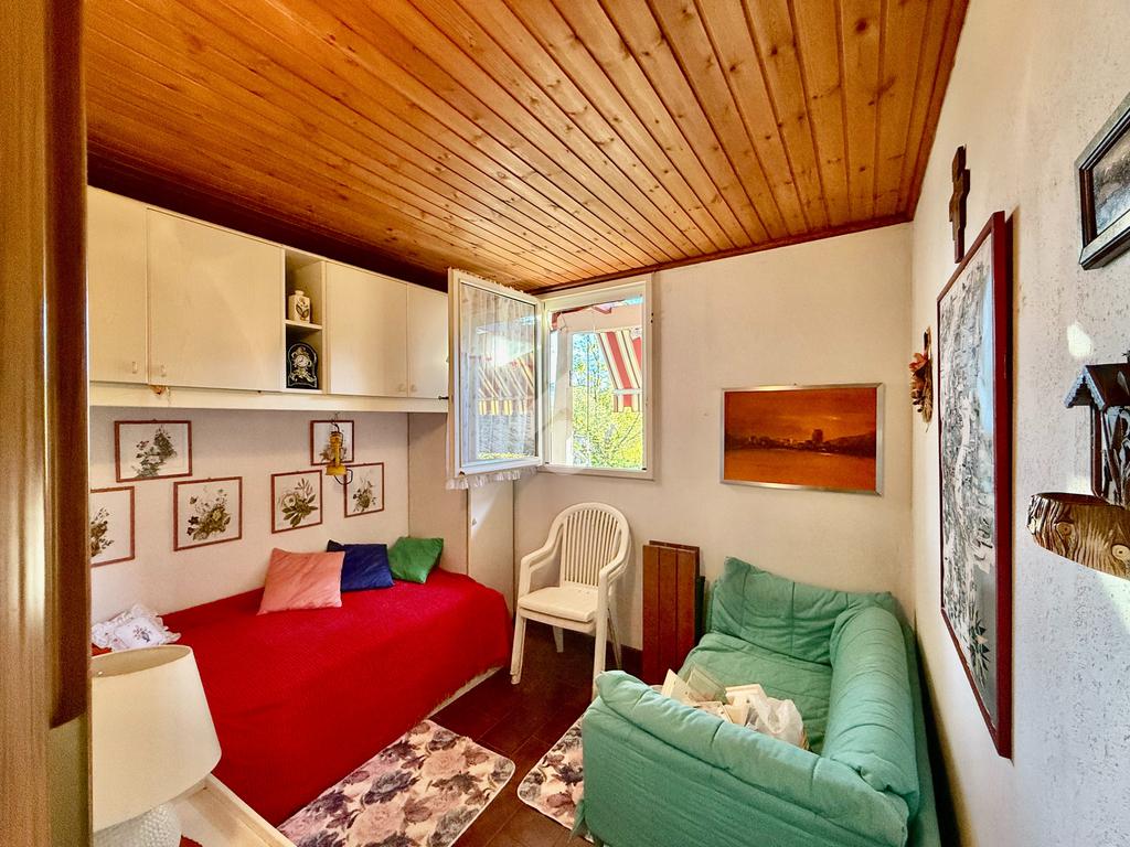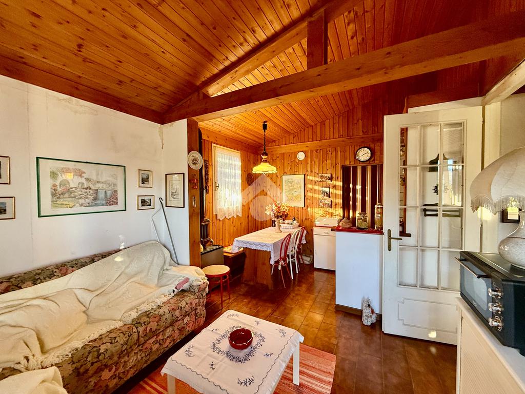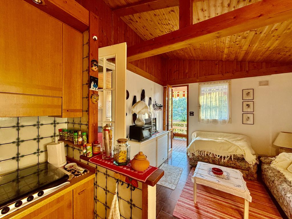 Ampio porticato panoramico, zona giorno con angolo cottura separato, camera matrimoniale, camera singola e bagno.