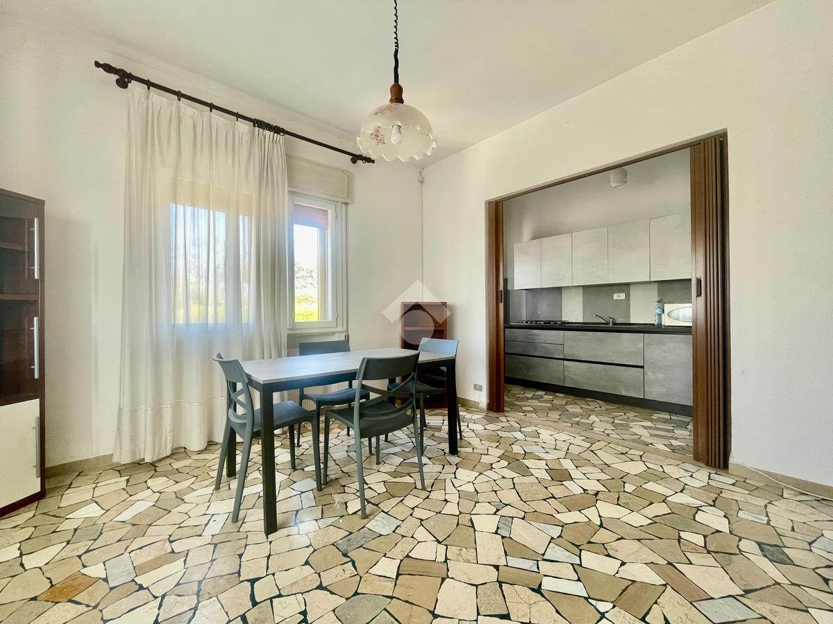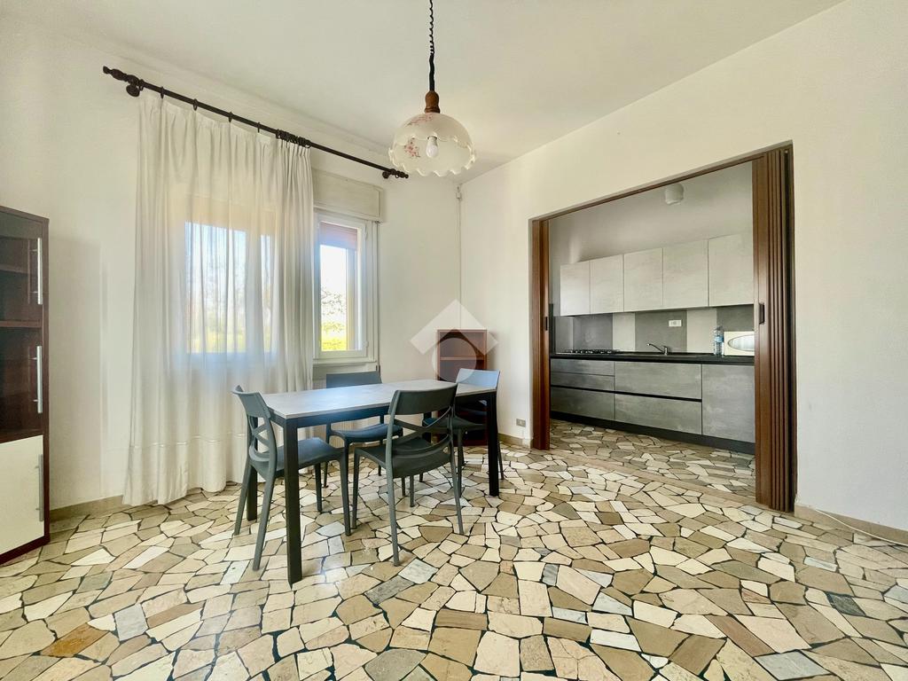 Scala esterna che conduce all'abitazione, ampio ingresso, soggiorno, cucina con zona pranzo, tre camere matrimoniali e bagno ampio.