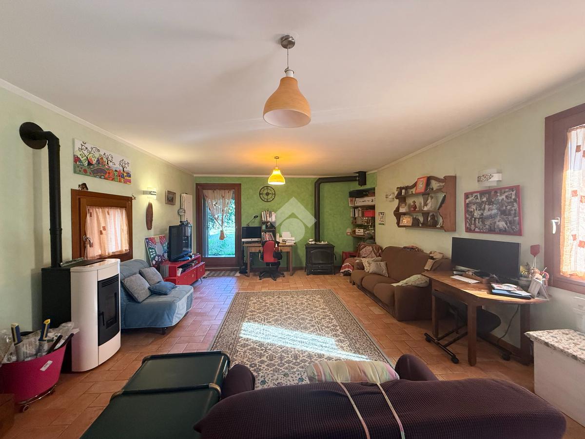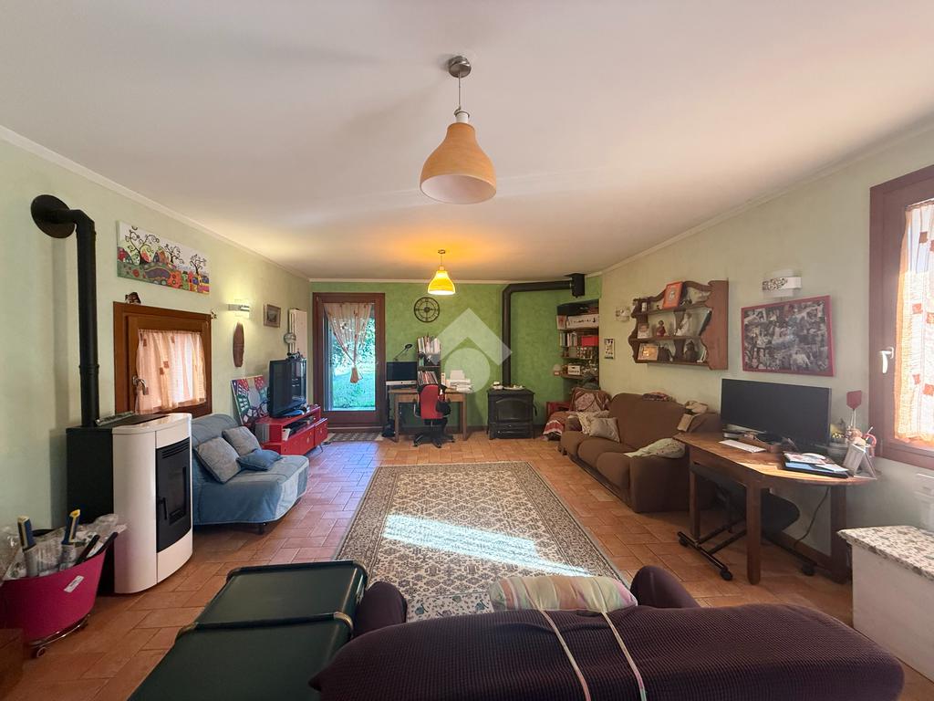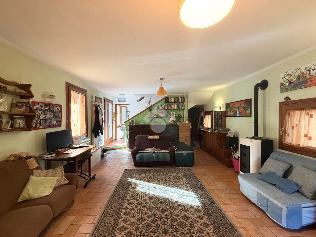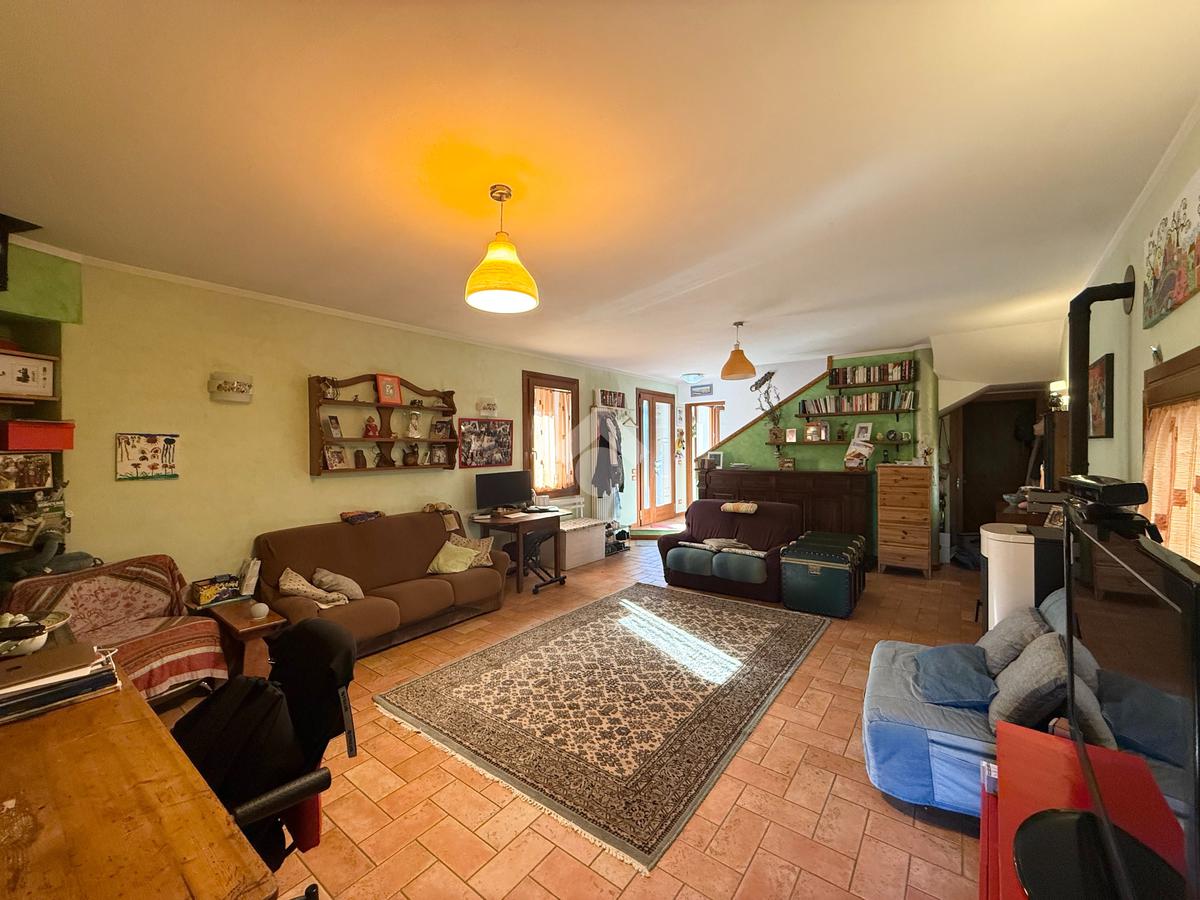 Al piano terra grande salotto direttamente collegato al giardino, cucina abitabile separata, bagno finestrato. Al primo livello, collegato con scala in legno, camera matrimoniale spaziosa, bagno con vasca, ulteriore camera doppia con possibilità di cabina armadio o area fitness. Le finiture sono rustiche e ben armonizzate al contesto.