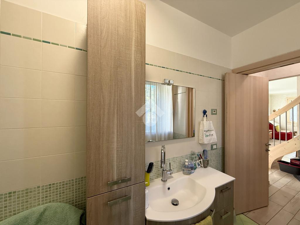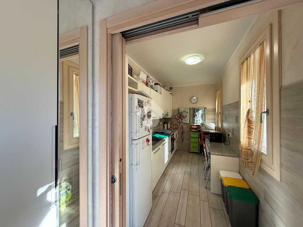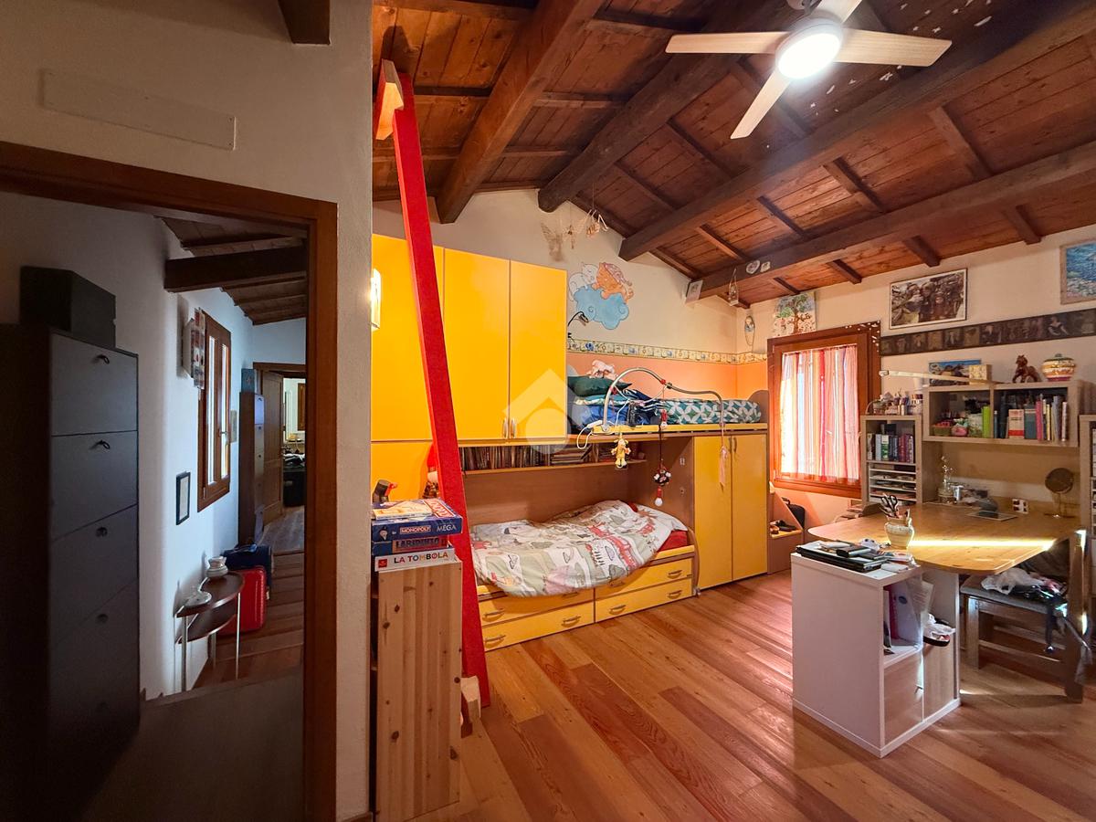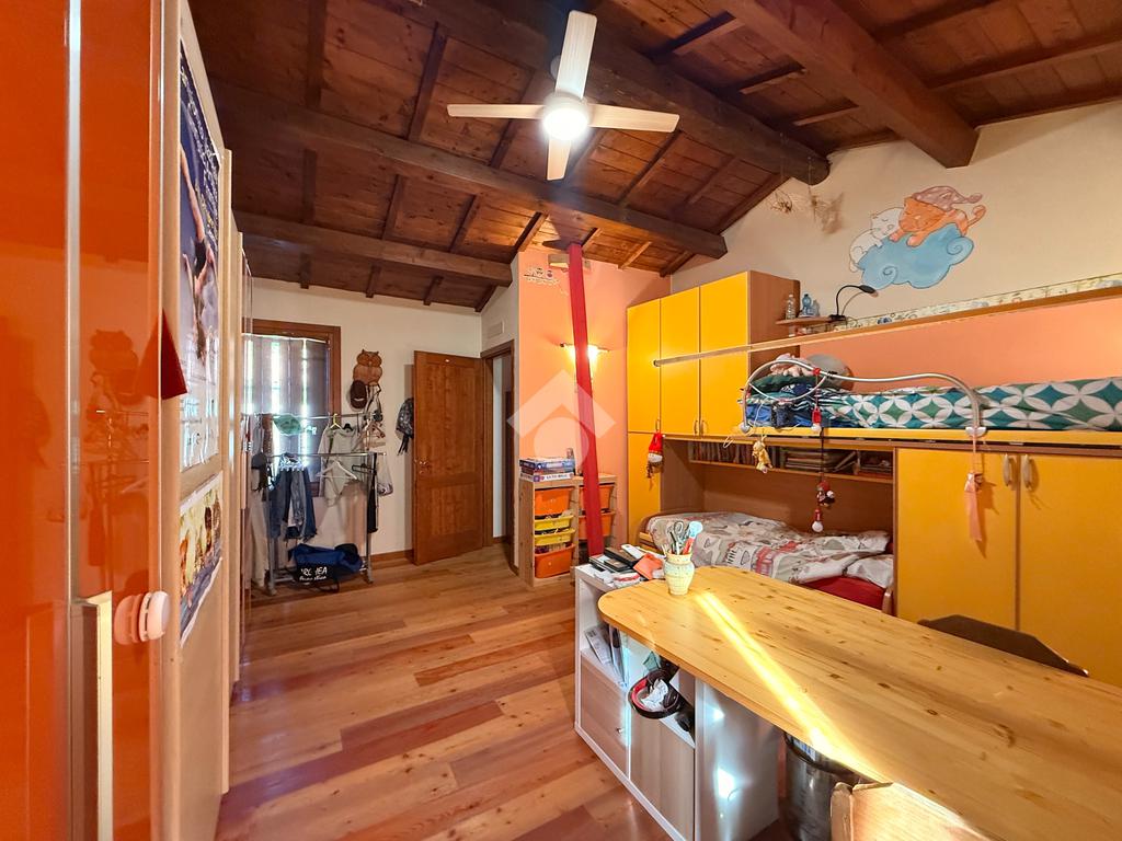 Al piano terra grande salotto direttamente collegato al giardino, cucina abitabile separata, bagno finestrato. Al primo livello, collegato con scala in legno, camera matrimoniale spaziosa, bagno con vasca, ulteriore camera doppia con possibilità di cabina armadio o area fitness. Le finiture sono rustiche e ben armonizzate al contesto.